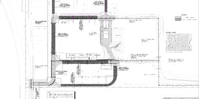 Survey and design project. Parking lot renovation. Expansion of sidewalk and safety bollards for outdoor cafe. Transportation engineering for traffic flow and control.