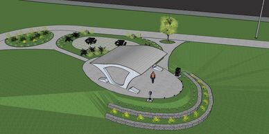 Conceptual design and layout for new welcome area at Highway 100 and 48. Walkways, structure, landscaping and irrigation.